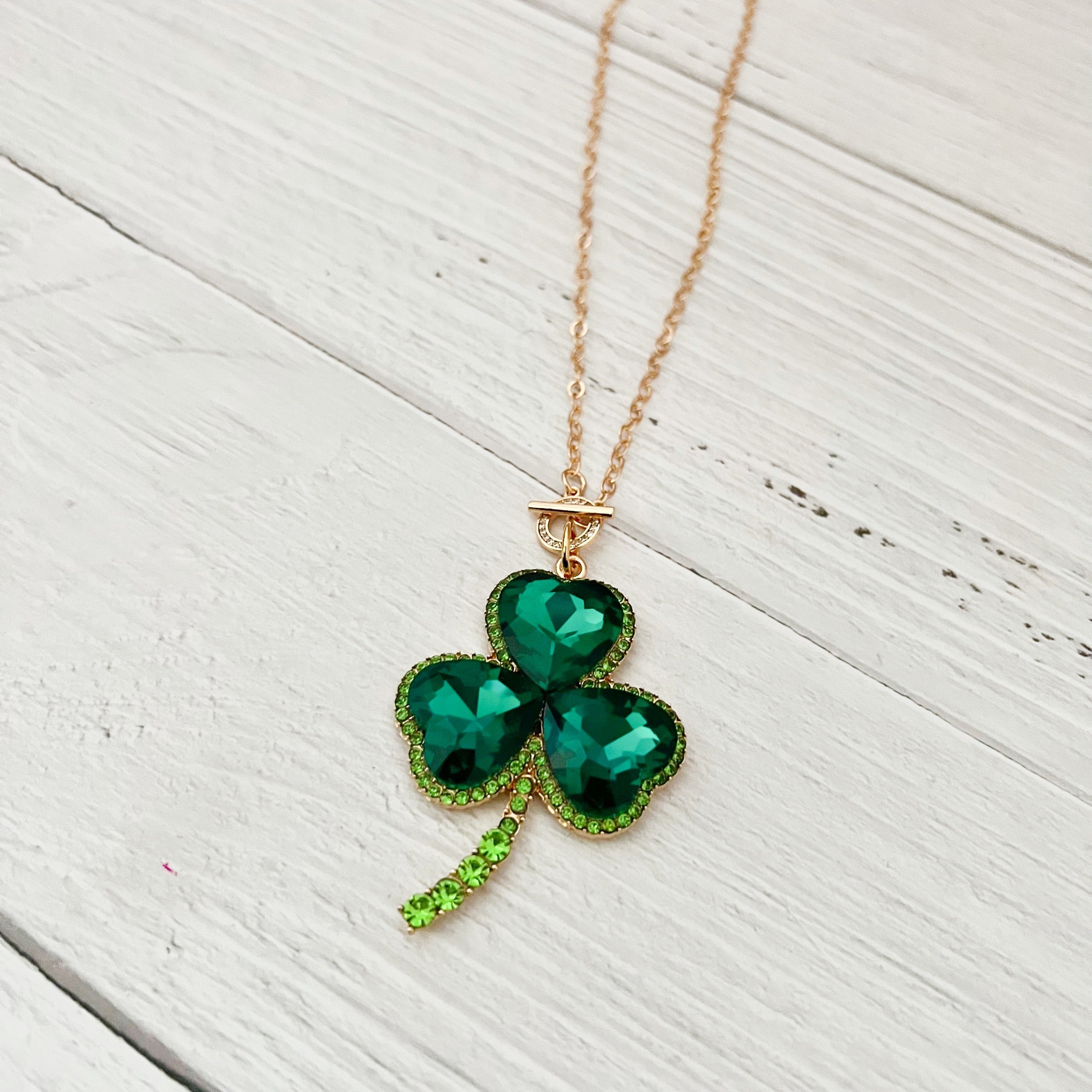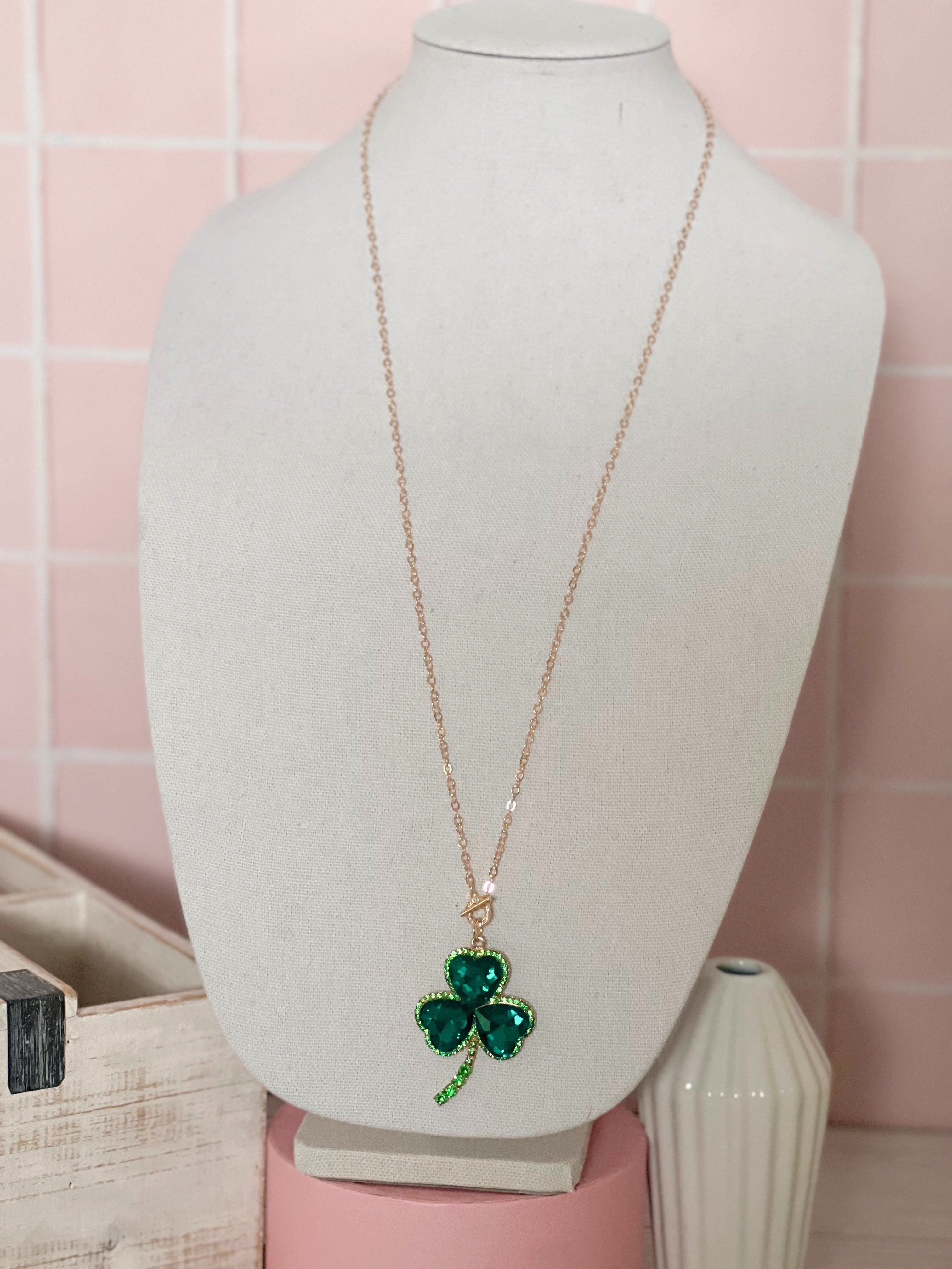 Rhinestone Statement Clover Toggle Necklace
